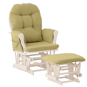 Instant Access of Sales and Deals of Stork Craft Hoop Glider and Ottoman, White/Green Chenille Here